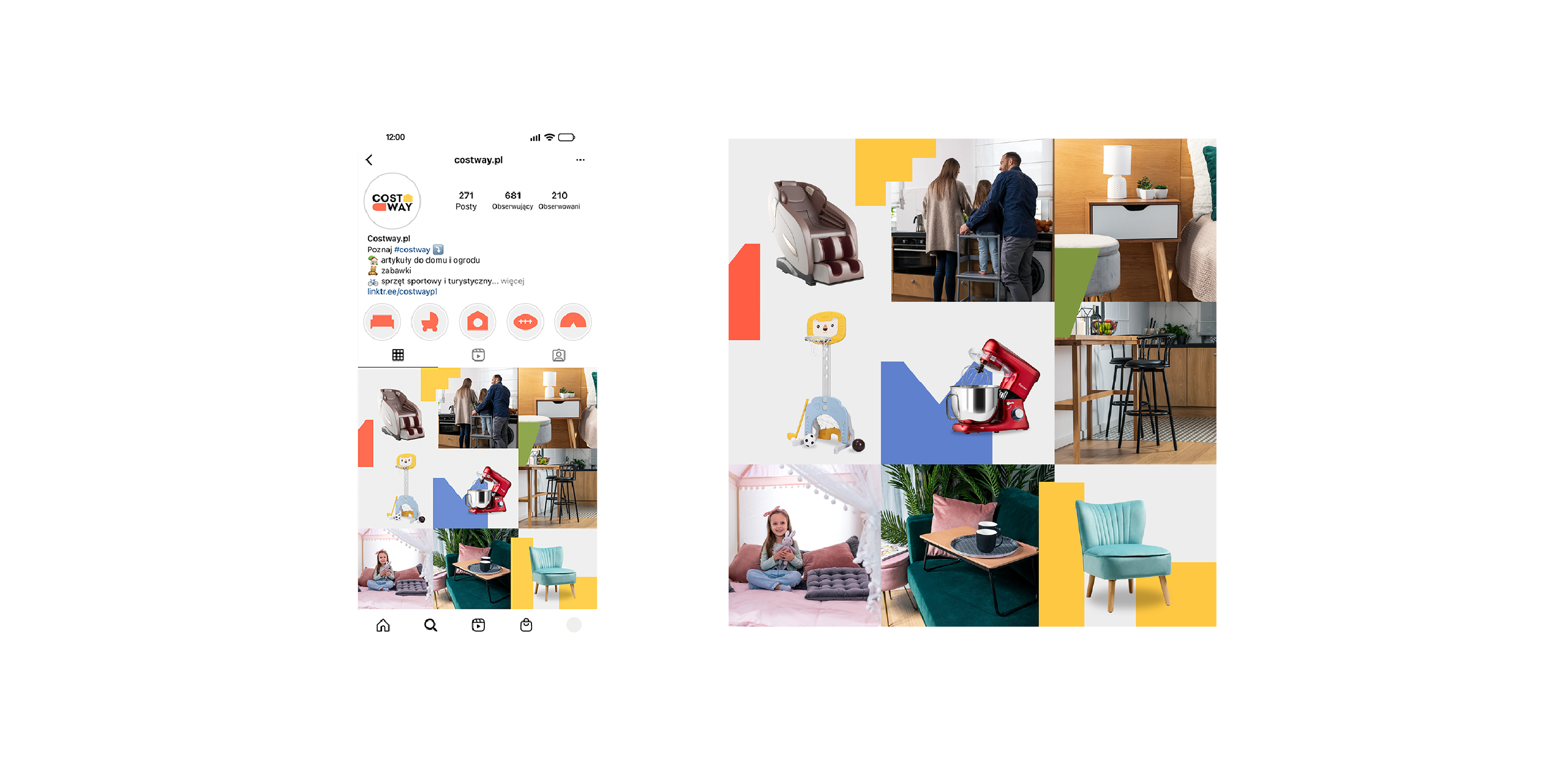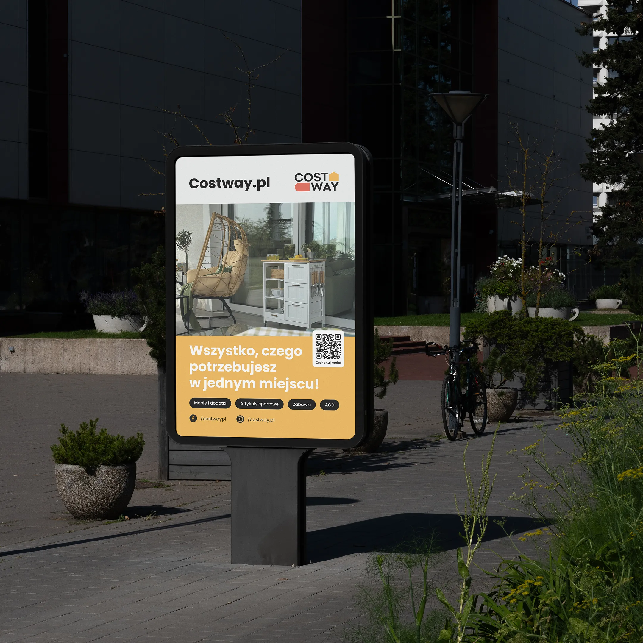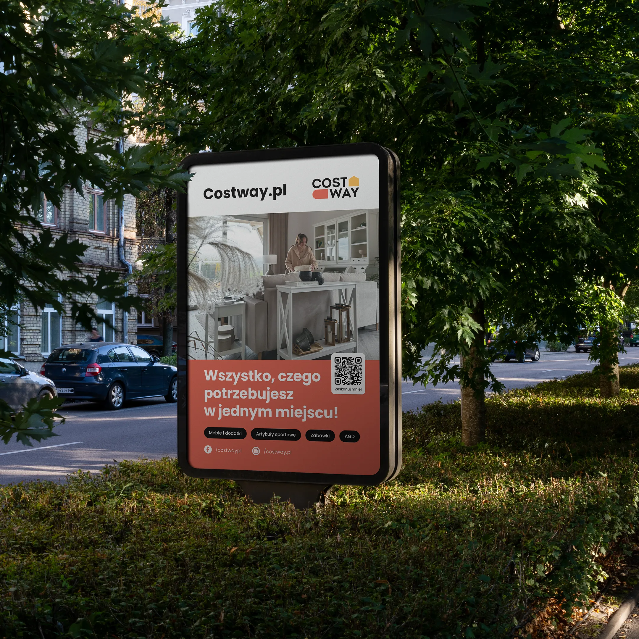 Kluczowym wyzwaniem było stworzenie spójnej komunikacji wizualnej dla polskiego oddziału Costway, która harmonijnie wpisywałaby się w istniejącą globalną identyfikację marki. Konieczne było zachowanie rozpoznawalności i estetyki Costway, jednocześnie dostosowując przekaz do lokalnych odbiorców oraz rozszerzając branding na nowe kanały i materiały promocyjne.
