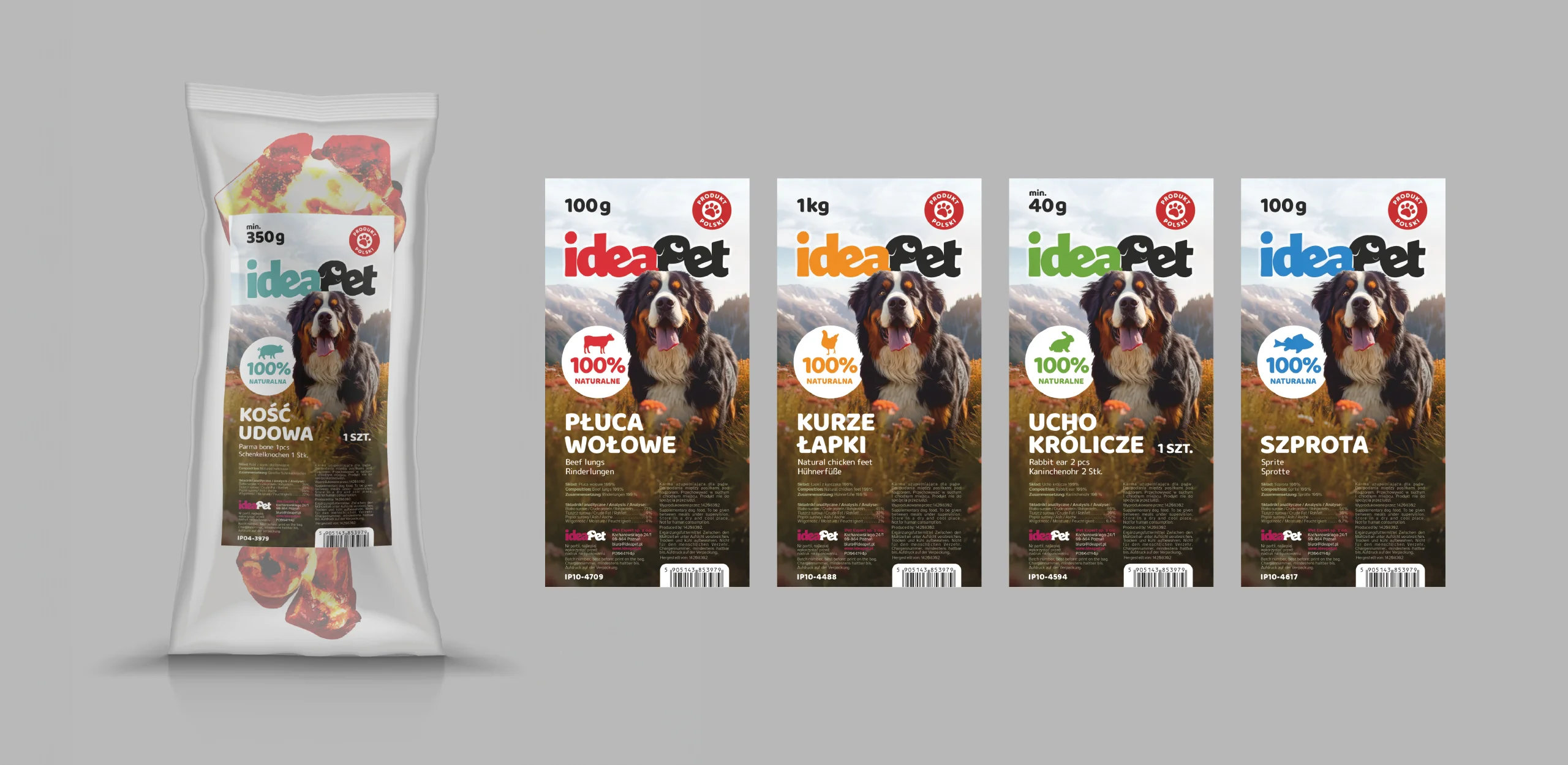 System opakowań marki IdeaPet, obecnej już na rynku, rozwijał się stopniowo i brakowało w nim spójności wizualnej oraz czytelnej struktury produktowej. Różnorodność kategorii – od przysmaków, przez suplementy, po gryzaki – wymagała uporządkowania komunikacji wizualnej i stworzenia systemu, który pozwoli budować rozpoznawalność marki oraz ułatwi rozwój portfolio produktów.