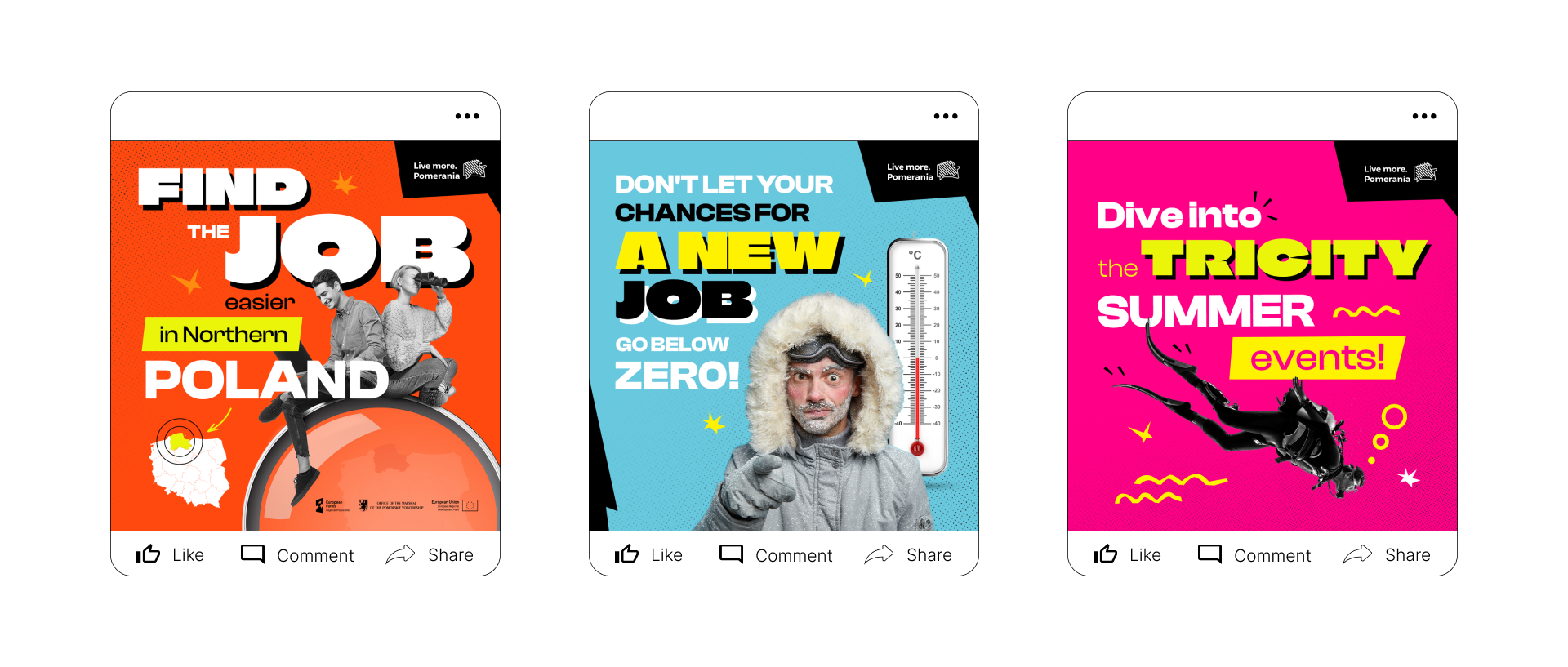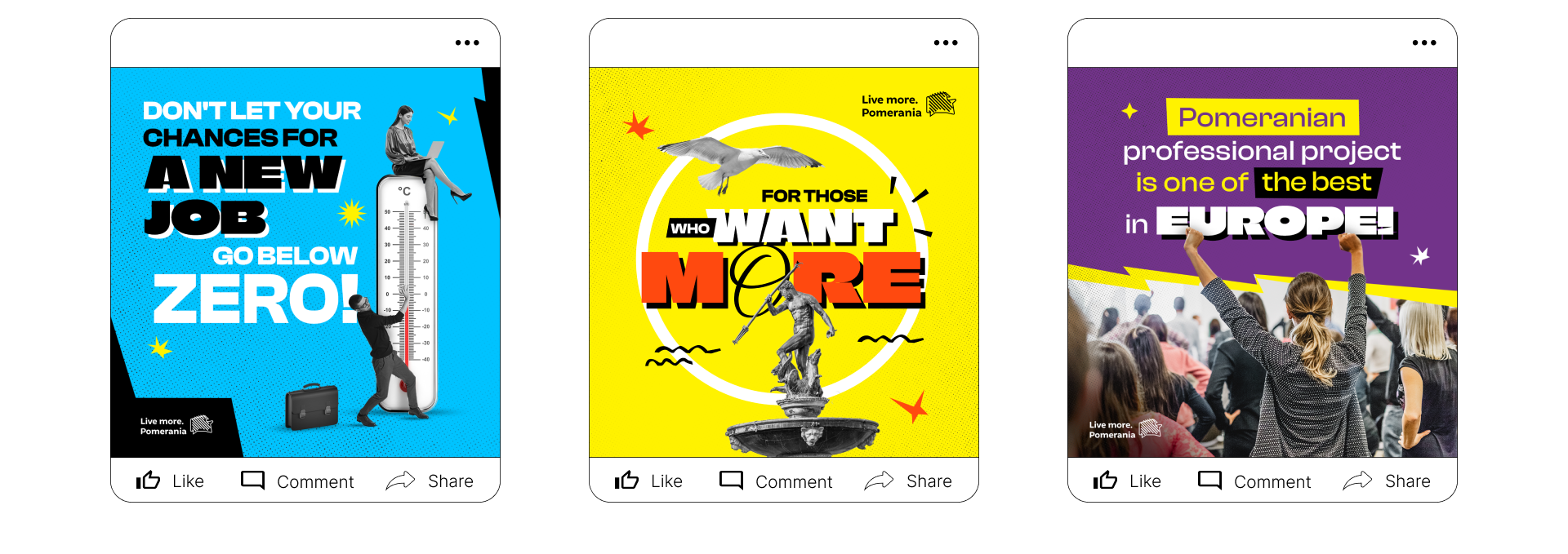 2. Skuteczniejszy Target: Odrębna, dynamiczna identyfikacja wizualna marki Live more. Pomerania pozwoliła na skuteczne dotarcie do młodych profesjonalistów, wspierając cel związany z pozyskiwaniem talentów do regionu.