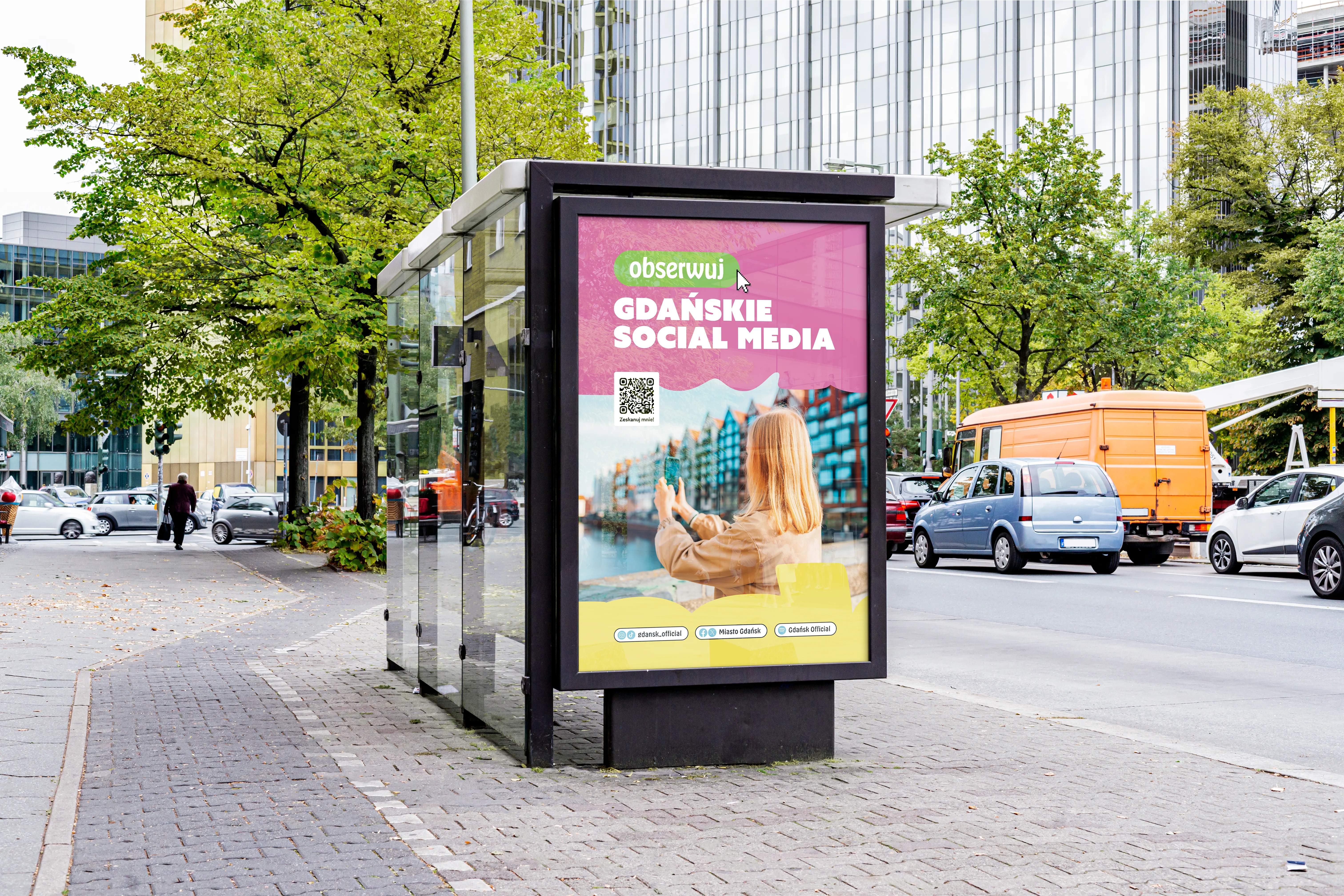 Głównym wyzwaniem komunikacyjnym Miasta Gdańska było przełamanie barier między komunikacją cyfrową a rzeczywistą przestrzenią miejską oraz efektywne zwiększenie liczby odbiorców śledzących oficjalne kanały social media miasta. Dane wykazały, że profile obserwowali głównie starsze grupy wiekowe, stąd kluczowym celem kampanii było dotarcie do młodszych pokoleń i angażowanie ich w miejskie treści. Konieczne było znalezienie innowacyjnego sposobu na wyprowadzenie zaproszenia do obserwowania profili z internetu do świata fizycznego, z wykorzystaniem języka i estetyki atrakcyjnej dla młodzieży. Opracowany system wizualny musiał być natychmiast rozpoznawalny, prosty i zawierać jasne wezwanie do działania (CTA), które sprawdzi się zarówno na citylightach, jak i na ekranach smartfonów.