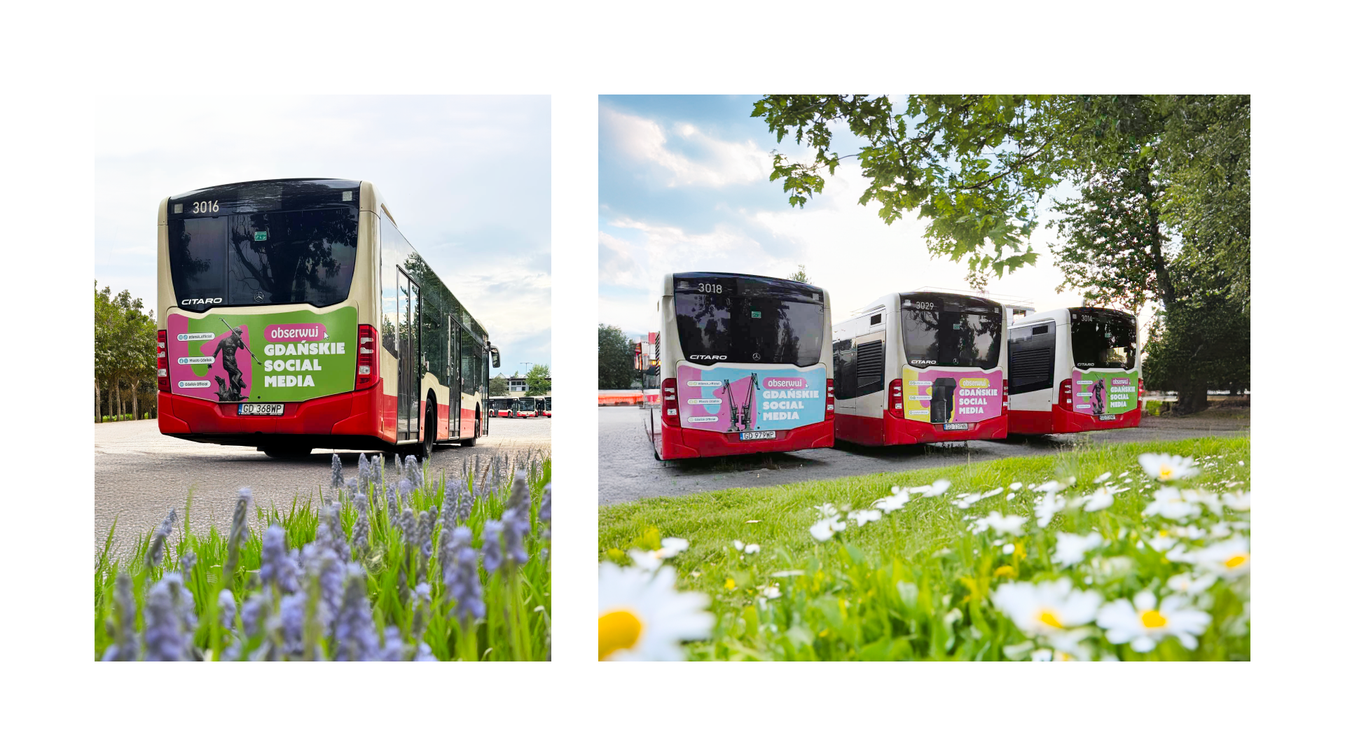 W odpowiedzi na te potrzeby stworzyliśmy zintegrowaną kampanię „Obserwuj gdańskie social media”, której siłą była wszechobecność w przestrzeni miejskiej. Aby dotrzeć do młodszych odbiorców, kluczowym elementem graficznym było wykorzystanie nośników typu citylighty oraz ekspozycja na tyłach autobusów – codziennych elementach krajobrazu, które zapewniły maksymalną widoczność komunikatu. Działania te zostały zsynchronizowane z produkcją animacji na duże wydarzenia oraz kompleksowym wsparciem w kanale digital, w tym projektowaniem dedykowanych naklejek na Instagram (IG Stickers) i reklam w Meta ADS. Takie rozwiązanie pozwoliło na stworzenie pętli komunikacyjnej – użytkownik widział zachętę w mieście, a następnie odnajdował spójne graficznie treści i narzędzia do interakcji w mediach społecznościowych, co skutecznie napędzało ruch na oficjalne profile.